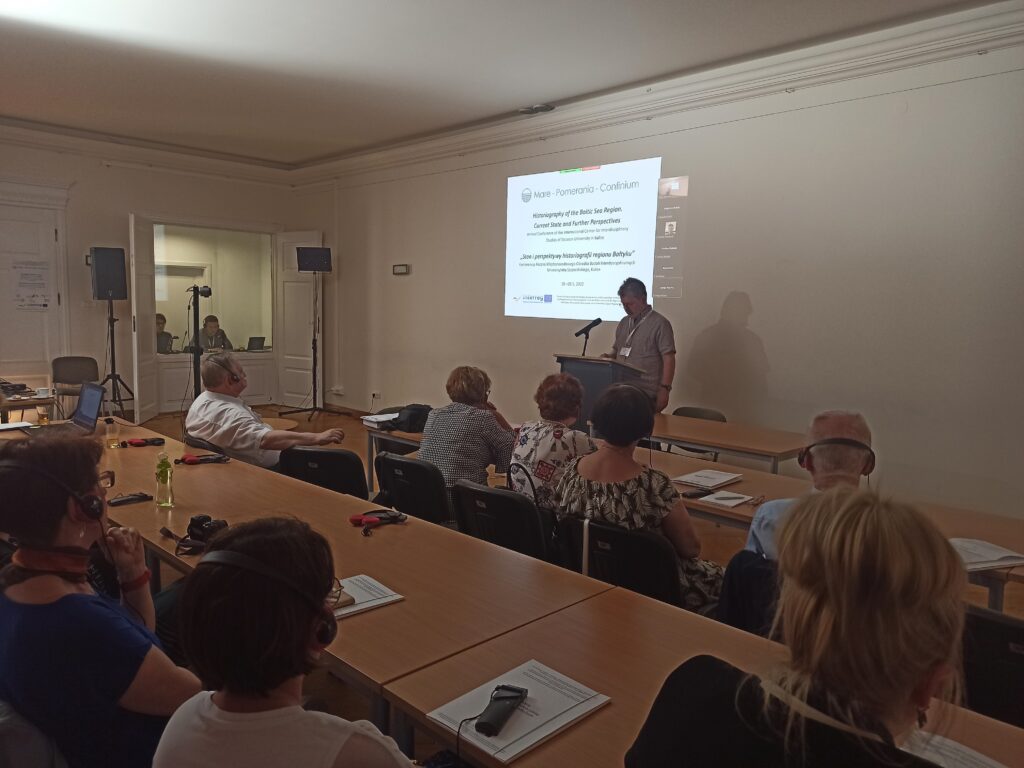 Am 19. und 20. Mai 2022 fand im MOBI in Kulice eine Konferenz mit dem Titel. „Historiography of the Baltic Sea Region. Current State and Further Perspectives / Stand und Perspektiven der Historiographie des Ostseeraums“, erstellt von MOBI-Direktor Prof. Jörg Hackmann. Die Veranstaltung hatte einen gemischten Charakter, da einige der Redner und Teilnehmer vor Ort waren, während andere online teilnahmen. Sie umfasste 6 Beiträge: The North-Western Slavs in Polish, German and Danish Historiography until the mid-20th century. A contribution to the historiographical image of the Baltic historical region. / Die Nordwestslawen in der polnischen, deutschen und dänischen Historiographie bis zur Mitte des 20. Jahrhunderts. Ein Beitrag zum historiographischen Bild des baltischen Geschichtsraums (Paweł Migdalski); Tourism on the Baltic rim, 1800-1990 / Tourism in the Baltic Sea regions (Jan-Hinnerk Antons); Europa litterata. Szymon Starowolski – Johannes Scheffer – Johann Moller – Benjamin Potzerne (Agnieszka Borysowska); Von Kulturträgern und Eroberern: Die Rezeption und Interpretation der mittelalterlichen Ostsiedlung in Wagrien (18. bis 19. Jahrhundert) / Of Culture Bearers and Conquerors: The Reception and Interpretation of the Medieval Eastern Settlement in Wagrien (18th to 19th Centuries) (Stefan Brenner); Immigration to the Baltic and especially to Northern Europe during the Medieval Ages and the Early Modern Era – Demography and Integration / Immigration ins Baltikum und insbesondere nach Nordeuropa während des Mittelalters und der frühen Neuzeit – Demographie und Integration (Jens E. Olesen); The Hidden Entanglements of Doing Baltic Historiography in the Cold War / Verborgene Verstrickungen beim Schreiben baltischer Geschichtsschreibung während des Kalten Krieges (Jörg Hackmann). Auch wenn die Beiträge sehr unterschiedliche Themen behandelten, zeigten sie doch, dass die Zusammenarbeit zwischen Historikern aus verschiedenen Ländern bei der Untersuchung baltischer Themen vertieft werden muss und dass vergleichende Forschung notwendig ist.