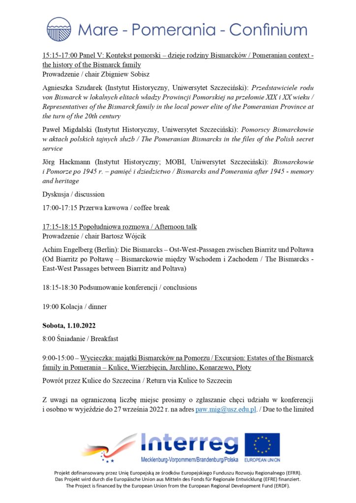 We would like to invite you to the next international conference entitled “The Bismarcks. Discourse(s) on the European family”, which will take place from 29 September to 1 October 2022 at the International Centre for Interdisciplinary Studies at the University of Szczecin in Kulice. The coordinators of the event are Paweł Migdalski and Bartosz Wójcik.